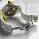 Корпус часов выполнен из прочной и долговечной керамики, что обеспечивает исключительную устойчивость к царапинам и повреждениям. При этом керамика отличается невероятной легкостью и комфортом при ношении. Защитное стекло изготовлено из закаленного минерала, гарантирующего максимальную защиту от механических повреждений.